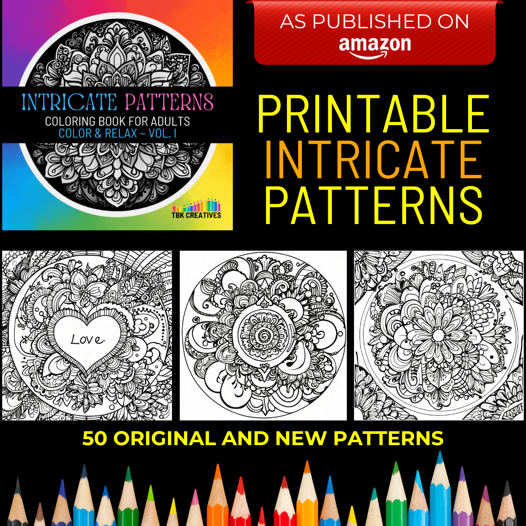 PRINTABLE - Intricate Patterns VOL. 1 (Color & Relax Collection) - Coloring Pages for Adults
