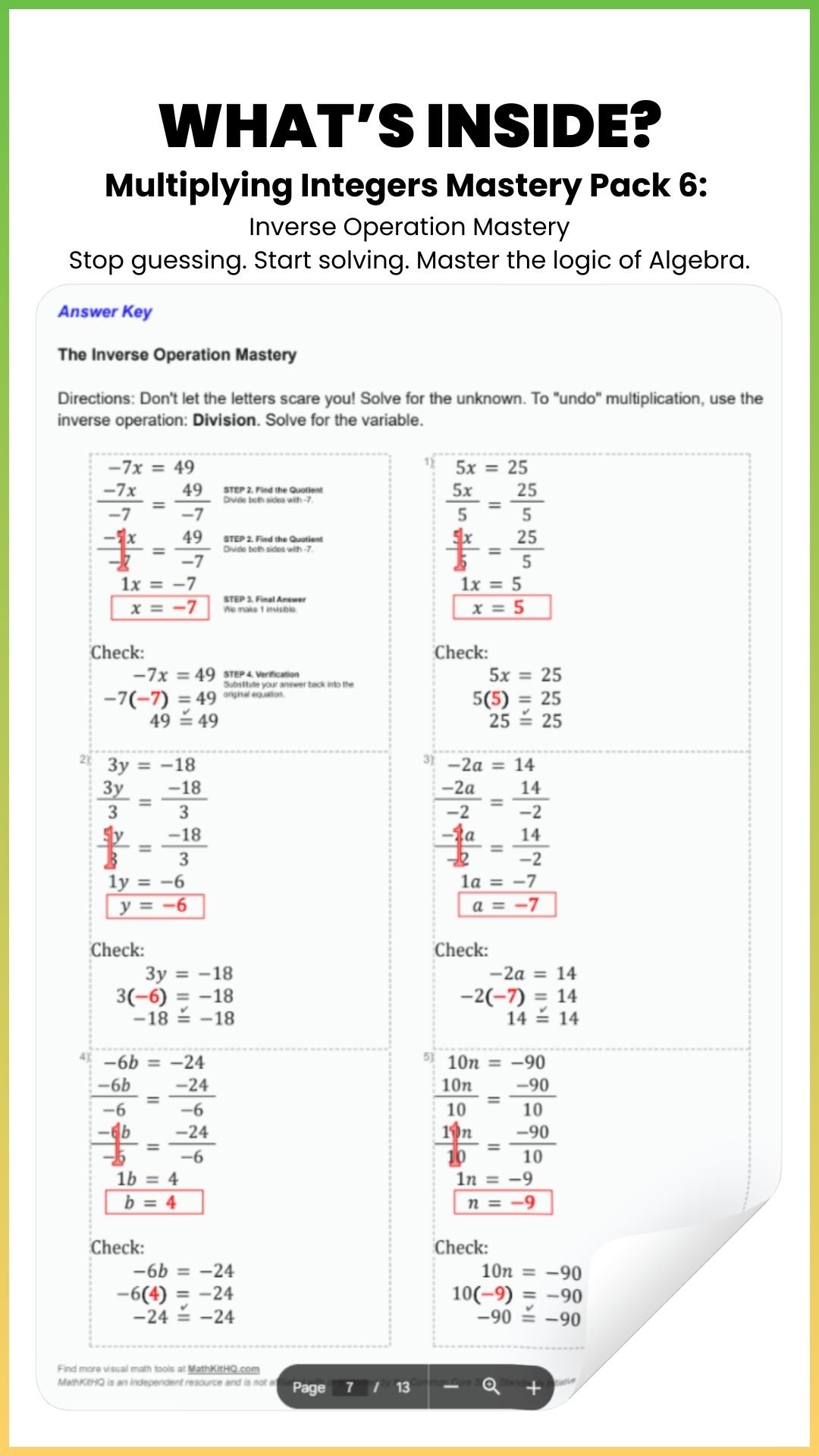 Multiplying Integers Mastery Pack 6: Inverse Operation Mastery (The Complete Unit)