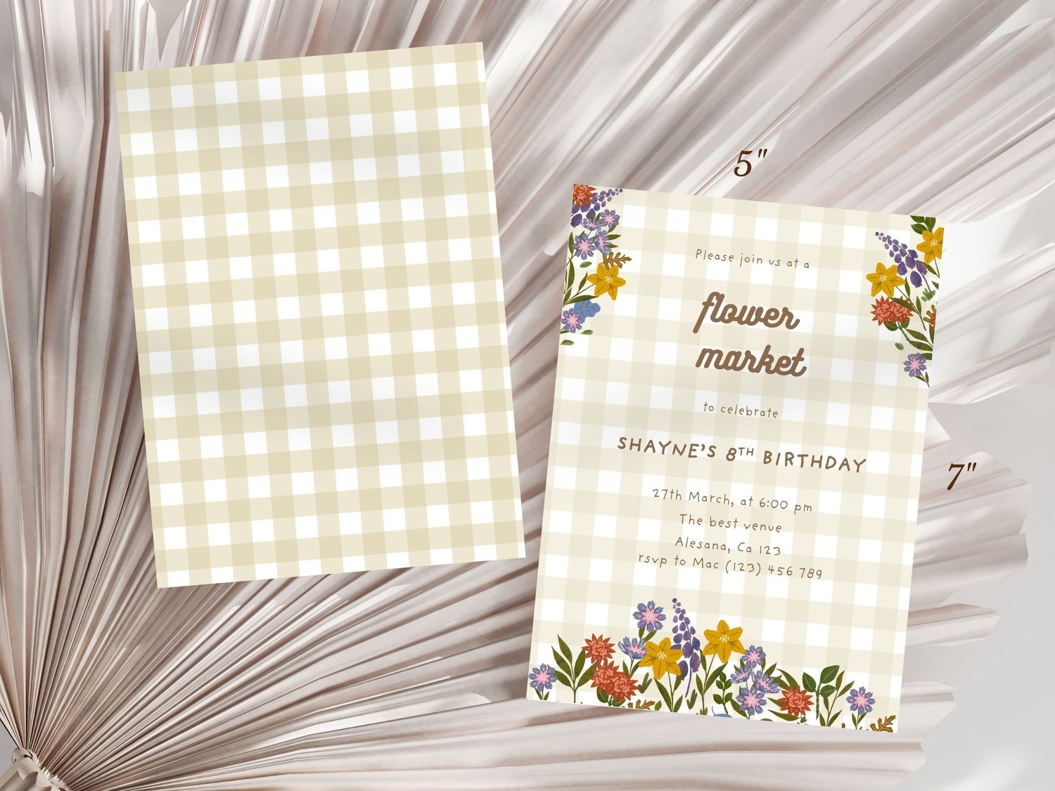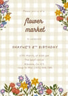 Celebrate your little one in the sweetest way with this charming Flower Market Birthday Invitation! Featuring soft beige gingham, whimsical wildflowers, and a modern hand-lettered font — this invite is perfect for a spring-inspired party full of blooms and joy.