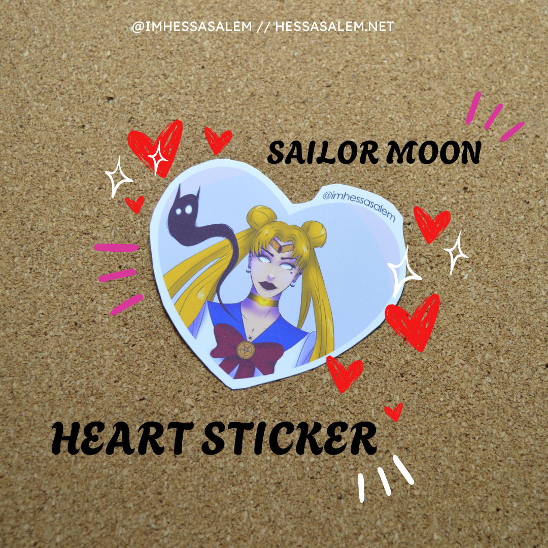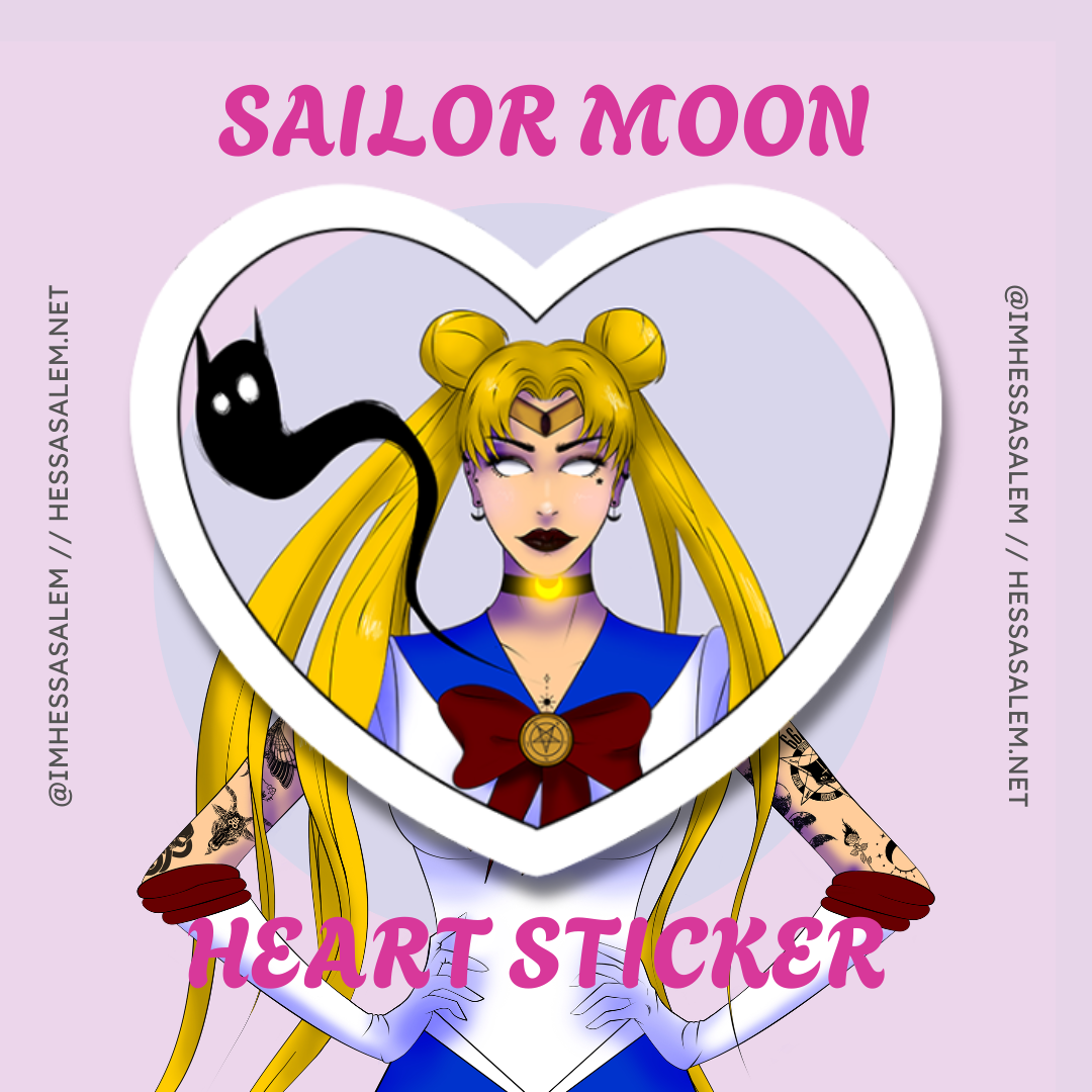 A heart-shaped sticker fan-artwork of Sailor Moon from Sailor Moon © HessaSalem.net, 2019.