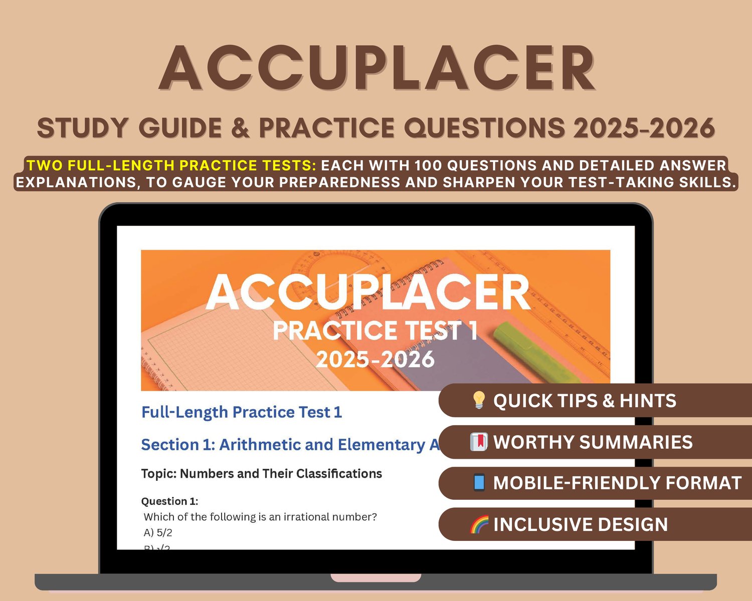 Struggling to prepare for the ACCUPLACER Exam 2025β2026? Worry no more! This comprehensive and expertly crafted study guide is your ultimate resource to help you succeed. Whether you're tackling arithmetic, algebra, or reading comprehension, this guide is designed to make your study journey smooth and stress-free.