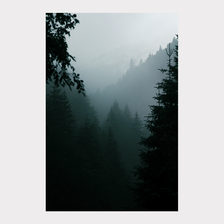 La composition de cette image se lit en trois couches superposées, de bas en haut. D’abord la terre, sombre et dense. Puis la montagne, qui dialogue avec le ciel par ses nuances bleutées. Et enfin, au sommet du cadre, un ciel bleu, clair et uniforme. Le pic de la montagne semble presque s’aligner avec l’arbre, comme s’ils se répondaient, comme si cet arbre solitaire contemplait le paysage qui s’étend devant lui.