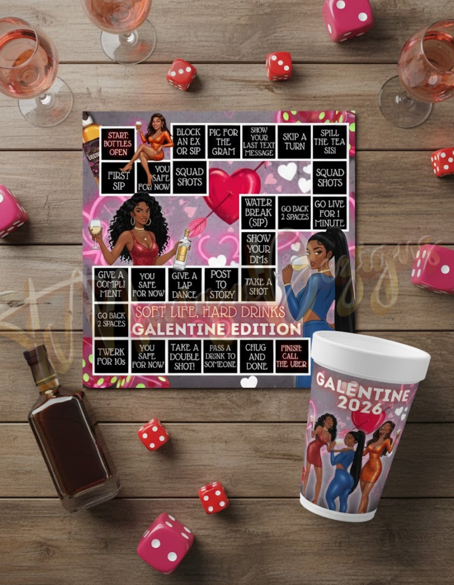 1 Digital Game Board Template: "Soft Life, Hard Drinks: Galentine Edition".