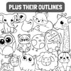 12 PNG files of the OUTLINES of these images- for you to color yourself, or add to coloring books