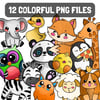 12 PNG files (with no background) of Cute animal illustrations clipart in colors