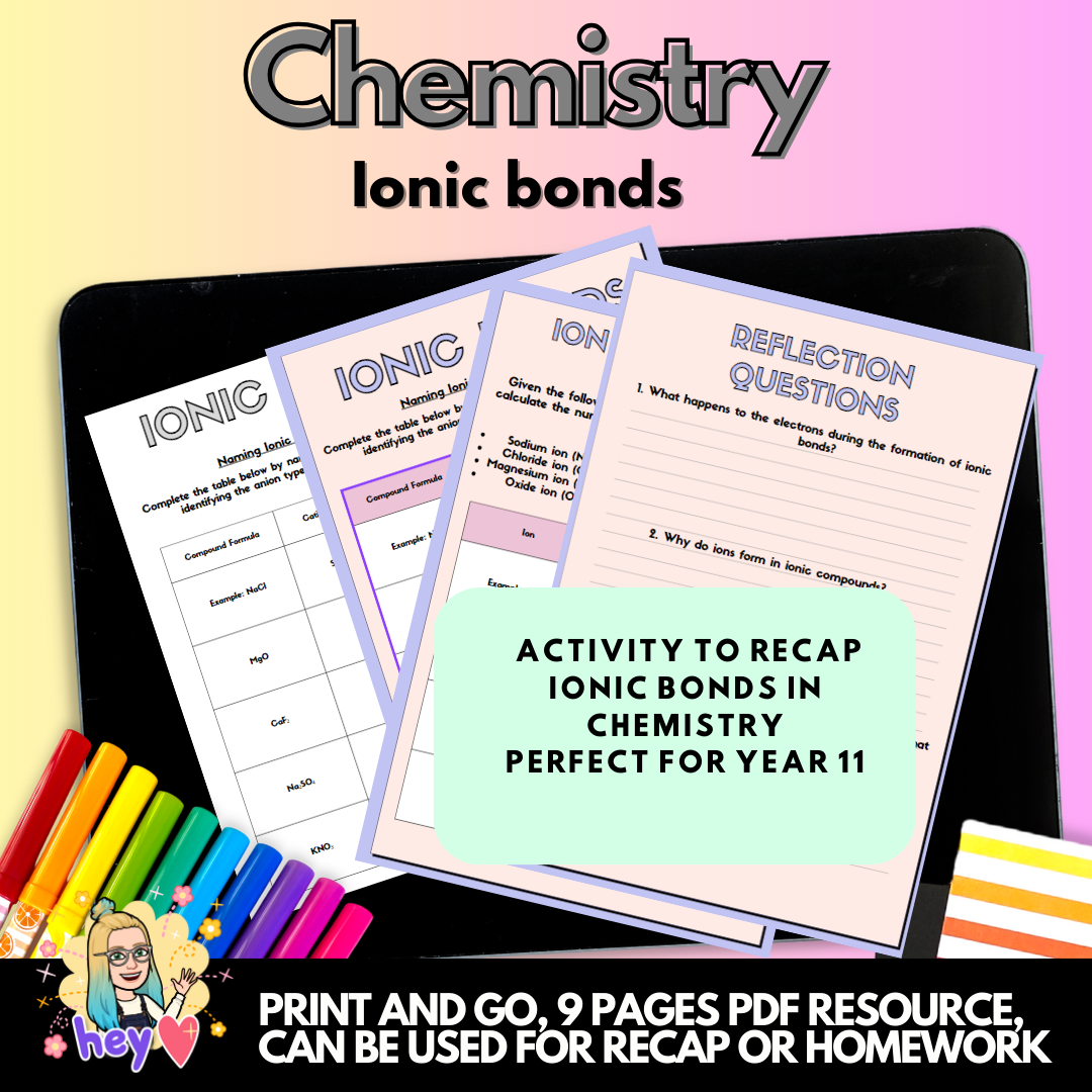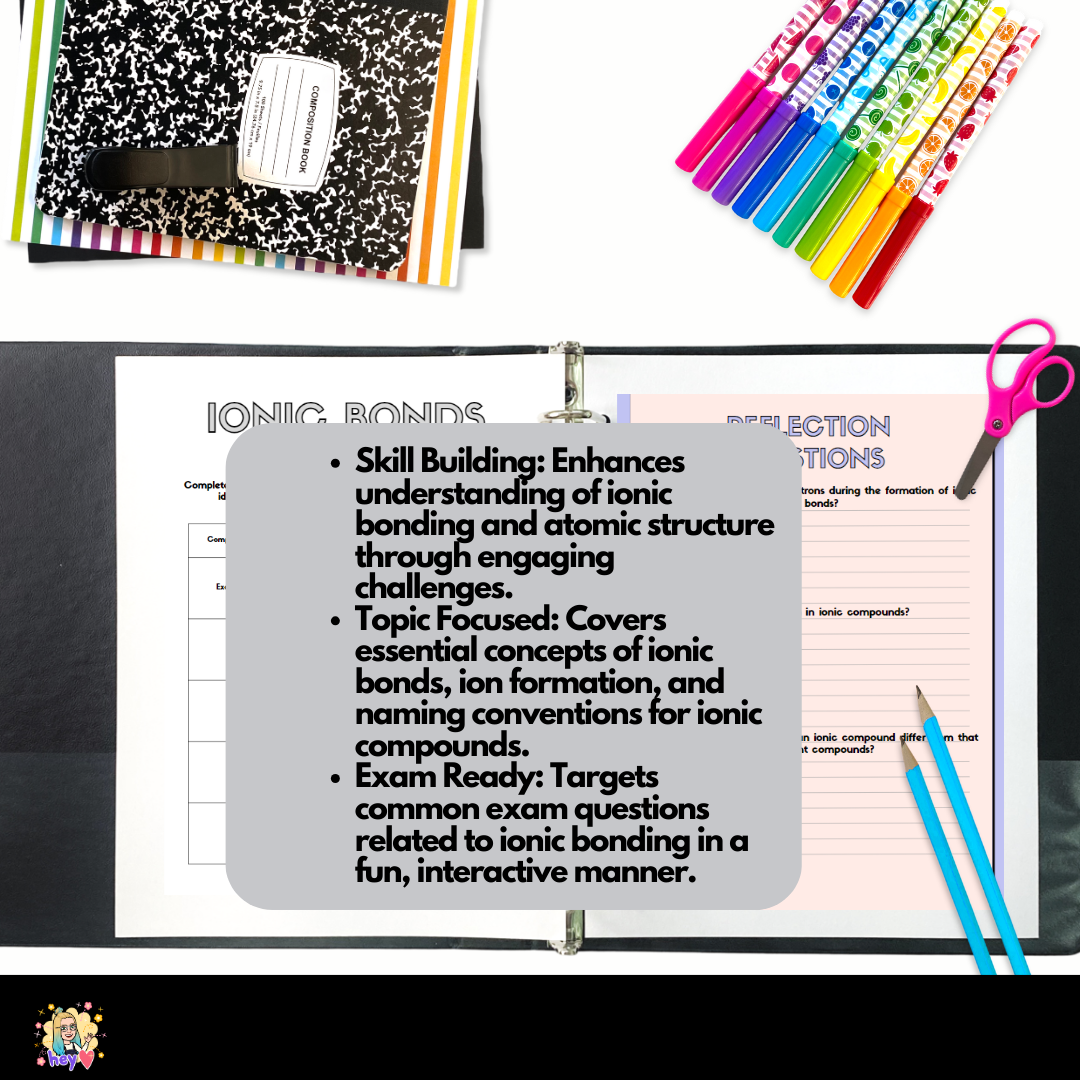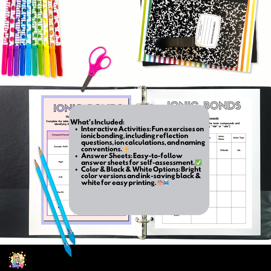 Perfect for reinforcing lessons on ionic bonding 🧲, this activity can be used in-class, as homework, or for remote learning. It’s designed to actively engage students and spark collaborative discussions when reviewed together in class. 💬