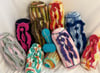 Custom Size - If you would like a cushion or a set in a specific combination of colors or sizes, please contact me to finalize your requirements and my availability. This cost is per cushion; a custom set will cost $400. Sizes are typically around 9" to 11" long x 3" to 5" dia, made of cotton or acrylic yarn.