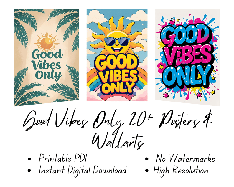 Good Vibes Only – 20+ Positive Posters & Wall Arts | Printable PDF | Instant Download | High-Resolution Decor