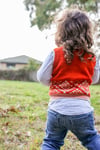 This pattern is named after my niece, Alma. I designed this colourwork motif and vest for her. It features a Scandinavian style colourwork pattern along the hem. The pattern is based on a motif from our grandmother's home town of Rovaniemi, Finland, creating a meaningful connection to our roots.