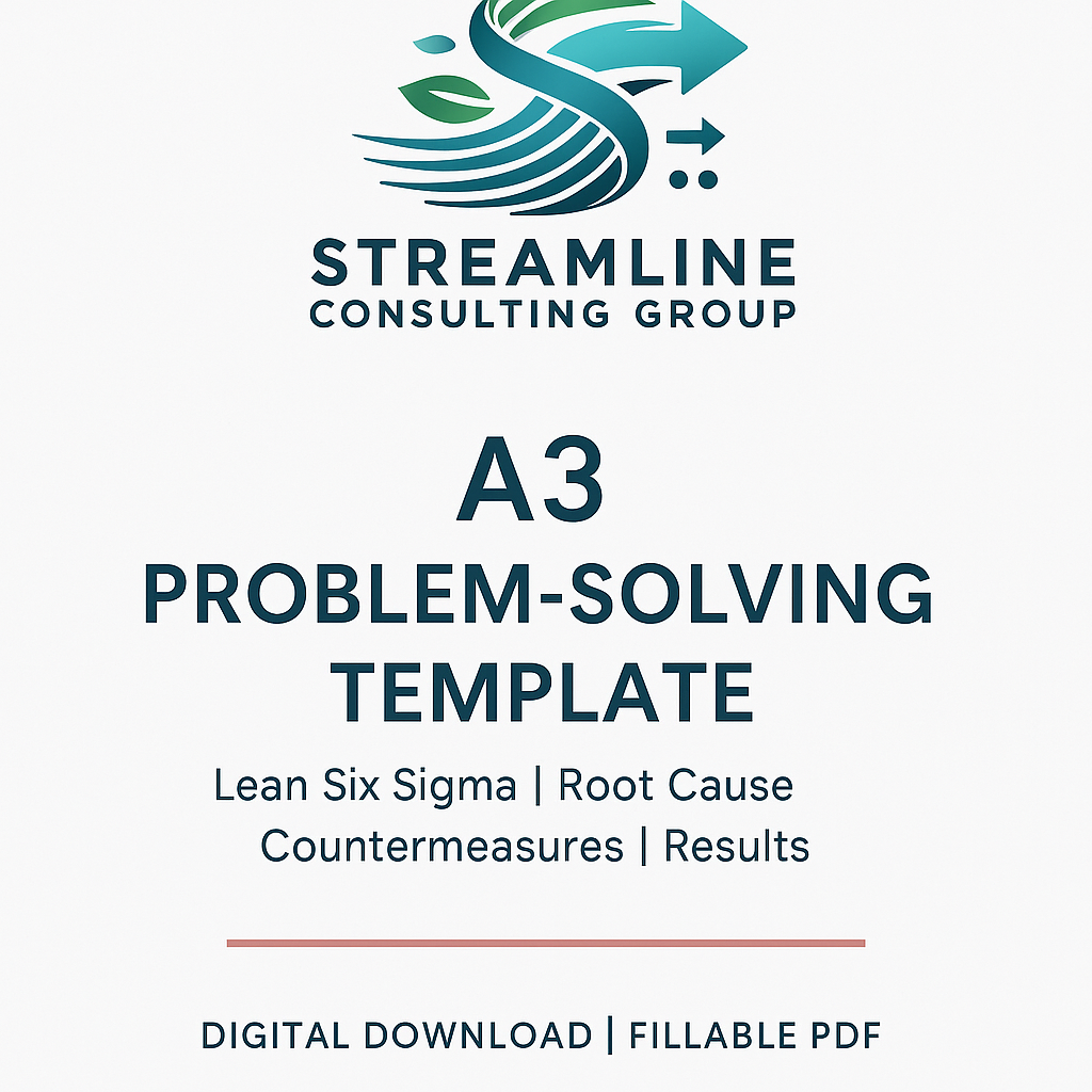 Streamline your Lean problem-solving process with the A3 Problem-Solving Template from Streamline Consulting Group — a professional one-page tool built to help teams define issues, analyze root causes, and implement lasting solutions using proven Lean Six Sigma methodology.
