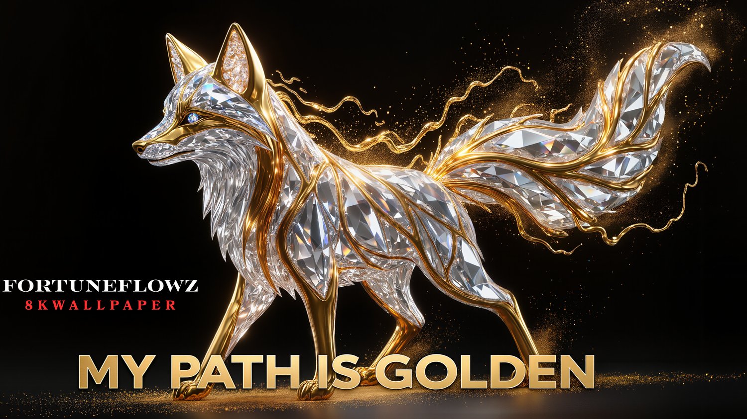 Crystal Gold Fox – 8K Luxury PC Wallpaper