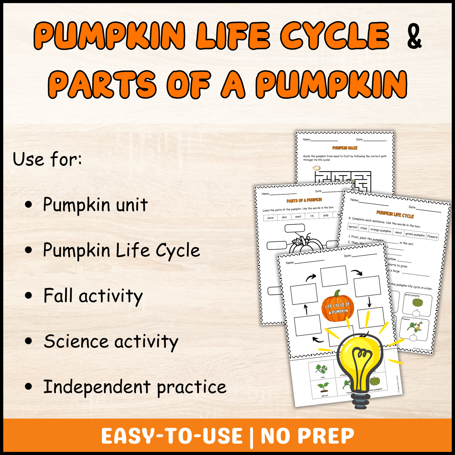 Pumpkin Life Cycle & Parts of a Pumpkin Worksheets and Activity-Science and Fall