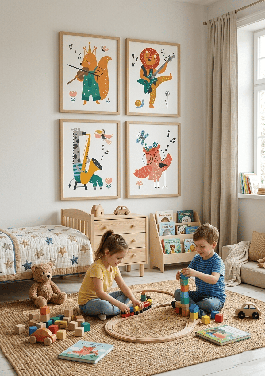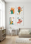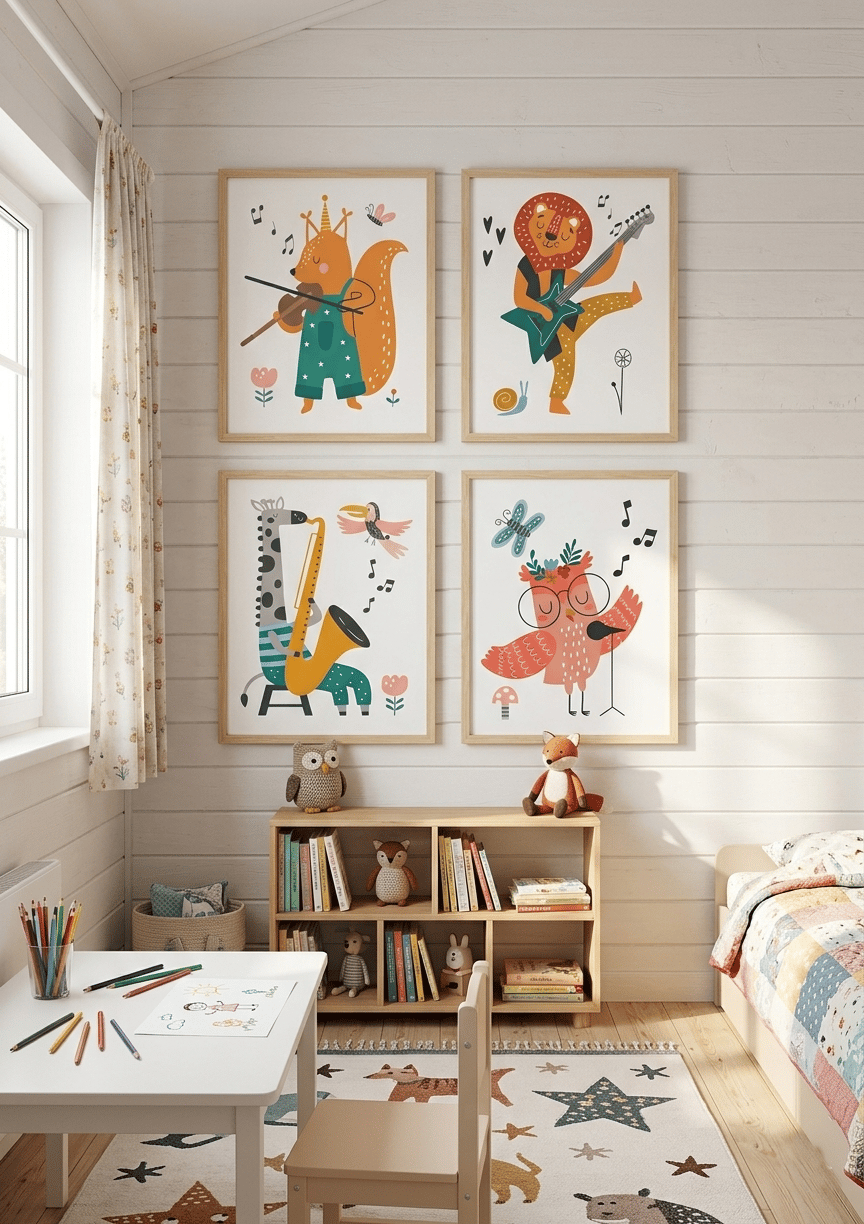 Set of 4 Kids' Room Wall Art - Funny Musical Animals - Nursery Wall Decor Scandinavian Style