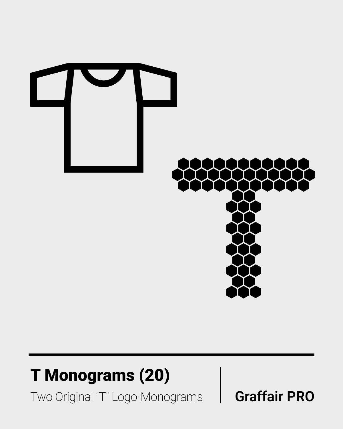 T Monograms (20): The 20th set of two original "T" logo monograms, included in the "1050 SVG Monograms" super bundle, which also features an Index catalog.
