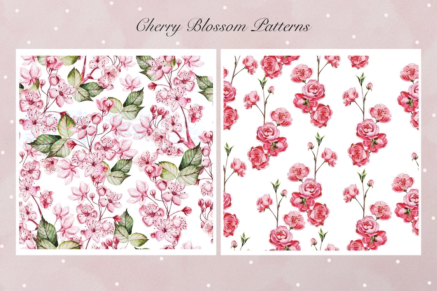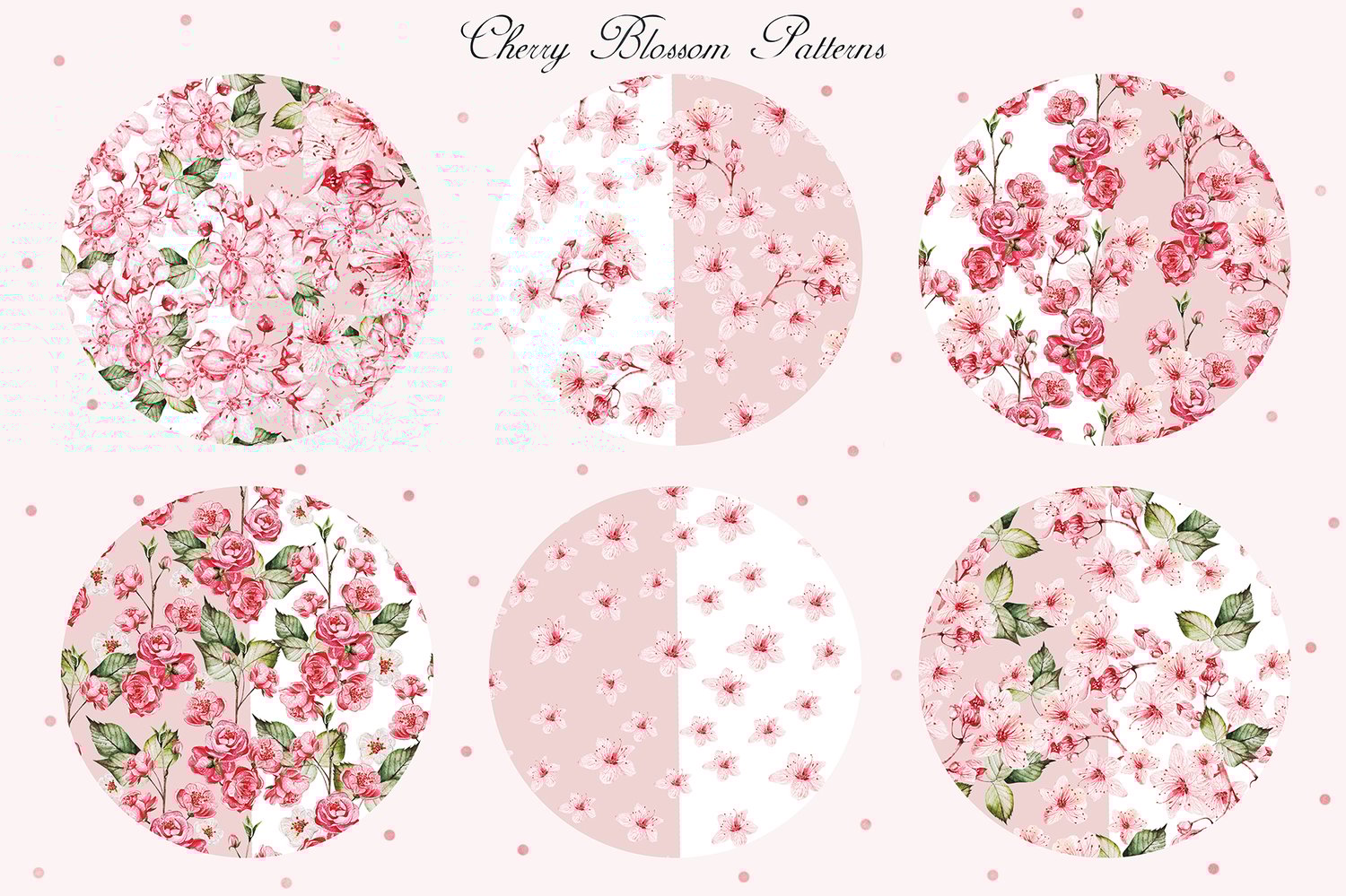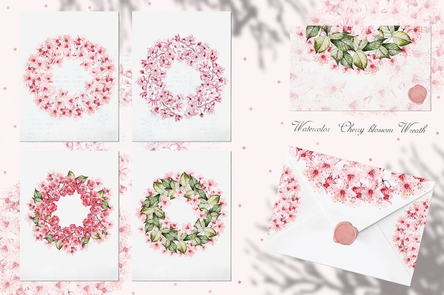 This watercolor set consists of 66 watercolor elements. They include patterns, wreaths and elements separately. Delicate watercolor Cherry blossom flower and leaves.