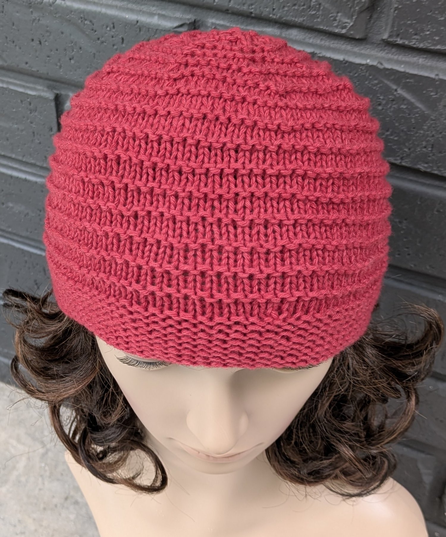 This firm fit, family beanie has a garter stitch brim then is worked in an easy textured ridge pattern. The yarn’s composition of lambswool and cotton makes for a soft and warm beanie that is exceptionally comfortable to wear.