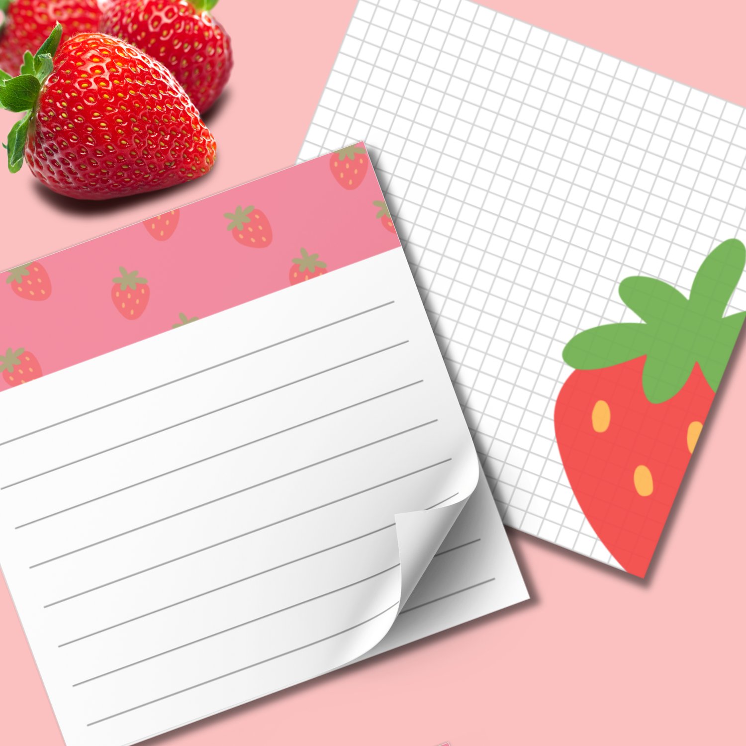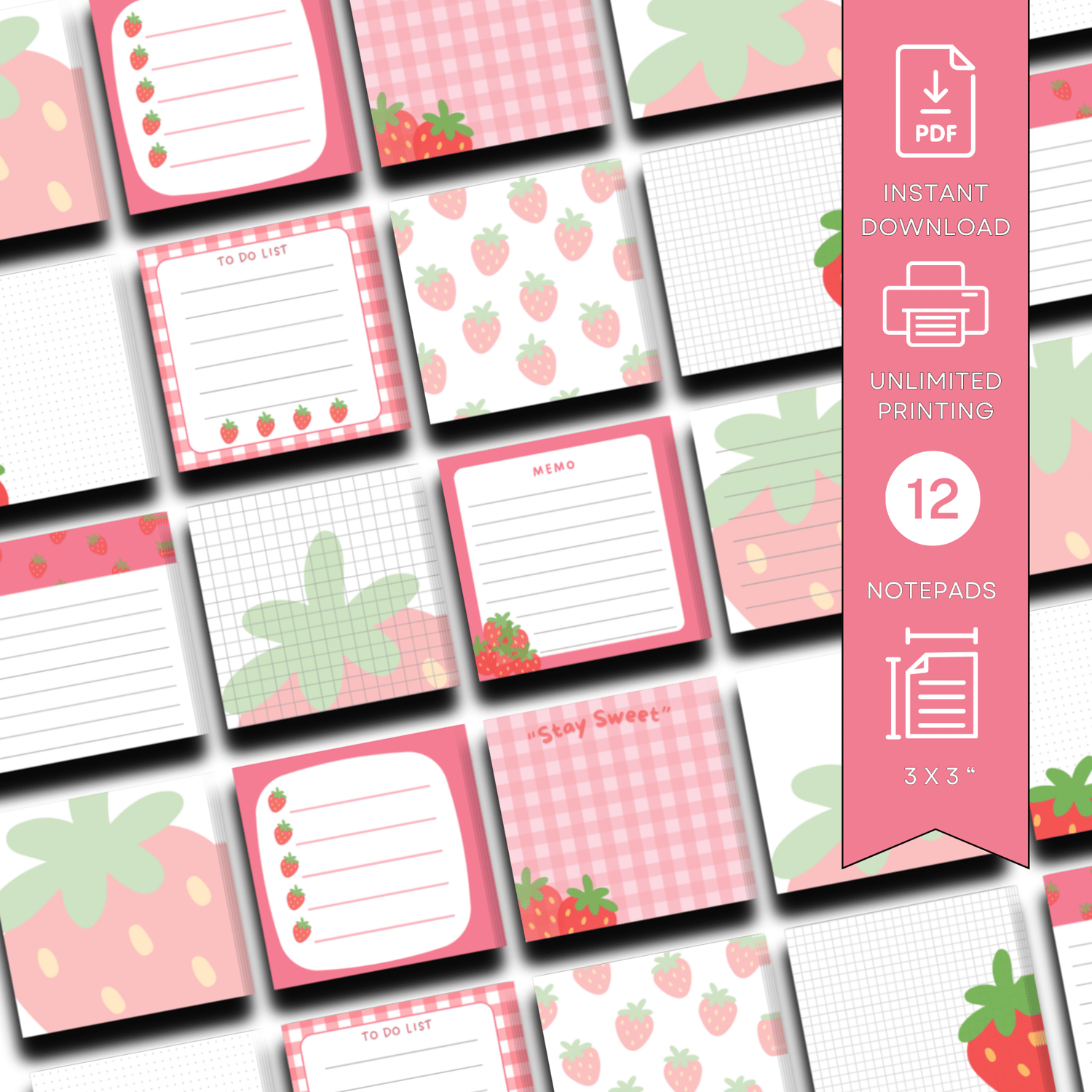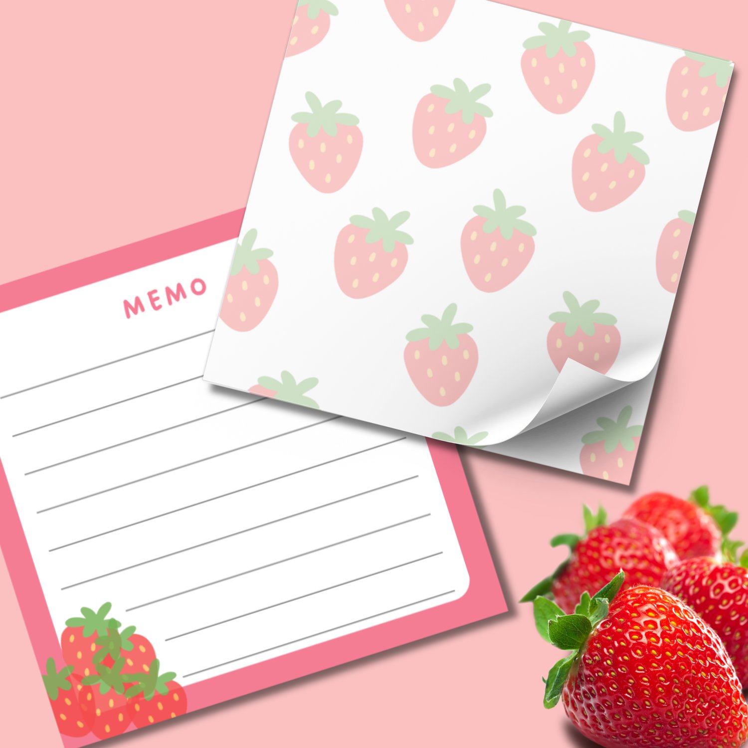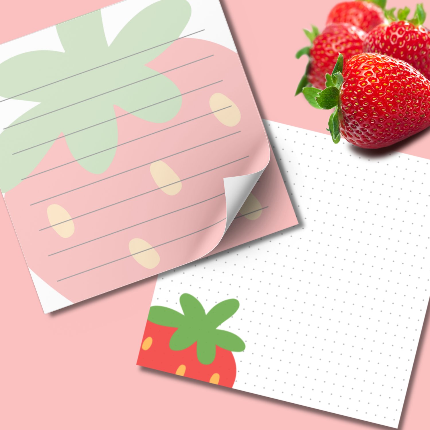 • Quantity: 12 unique strawberry-themed memo pad designs