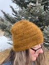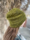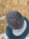 I wanted a hat to showcase the yarn in an elegant fashion, and had an eye for the feature of the crown decreases. This pattern has a folded-under brim for extra warmth on the ears and a stockinette stitch fabric to showcase a beautiful tweed or slub yarn. The hat works just as well with a DK weight yarn held single or a fingering + mohair held together. Either way, you will have a simple, understated hat with a lovely, refined finish.