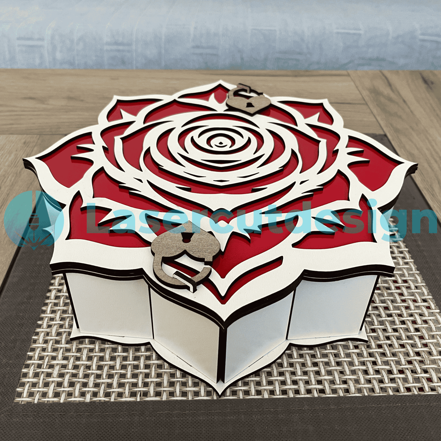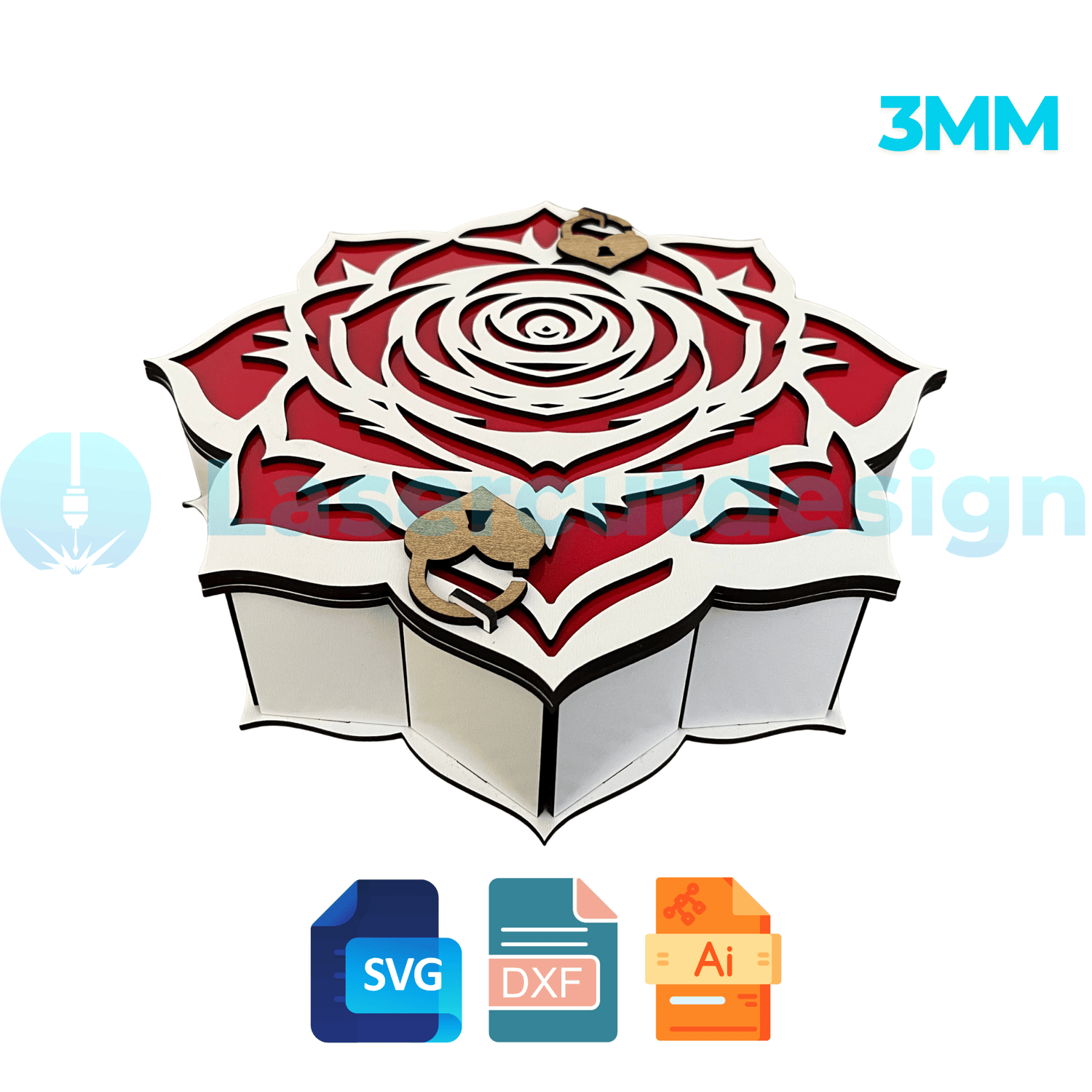 Rose Flower Box SVG DXF AI | Rose Shaped Gift Box Laser Cut File | Decorative Rose Box 3mm | Laser Cut Flower Box