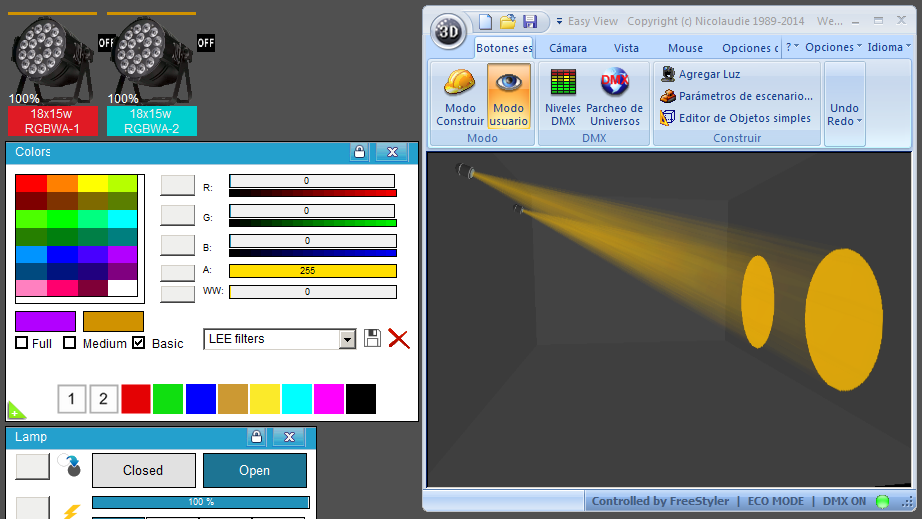 Esta Librería SSL2 está optimizada para trabajar con Magic 3d Easy View. Es decir para ver una representación 3D de las secuencias que estemos realizando con Freestyler, QLC+ o cualquier otro soft que se conecte con Magic 3d.