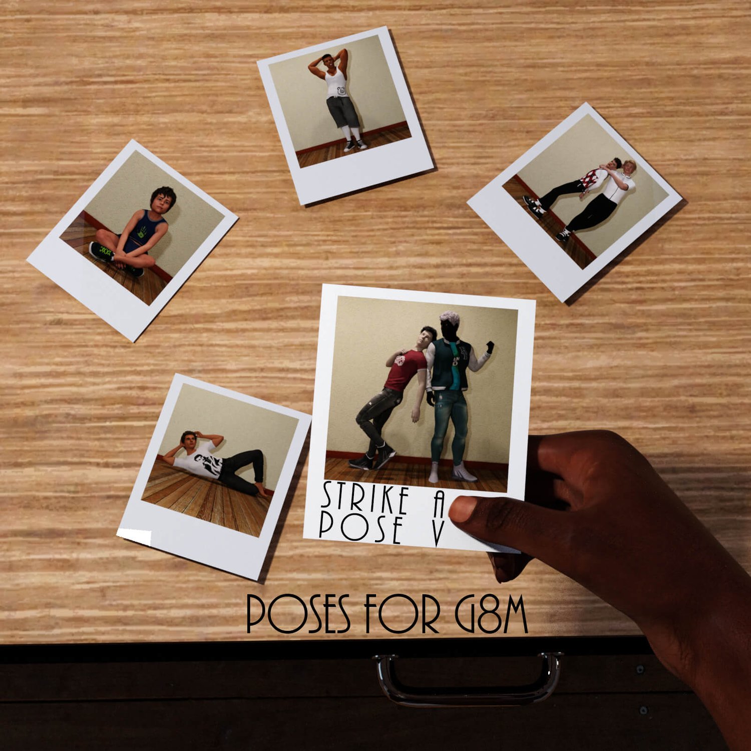 - 50 poses for Genesis 8 Male(s) (10 "standing" poses; 10 "sitting" poses; 30 "leaning" poses)