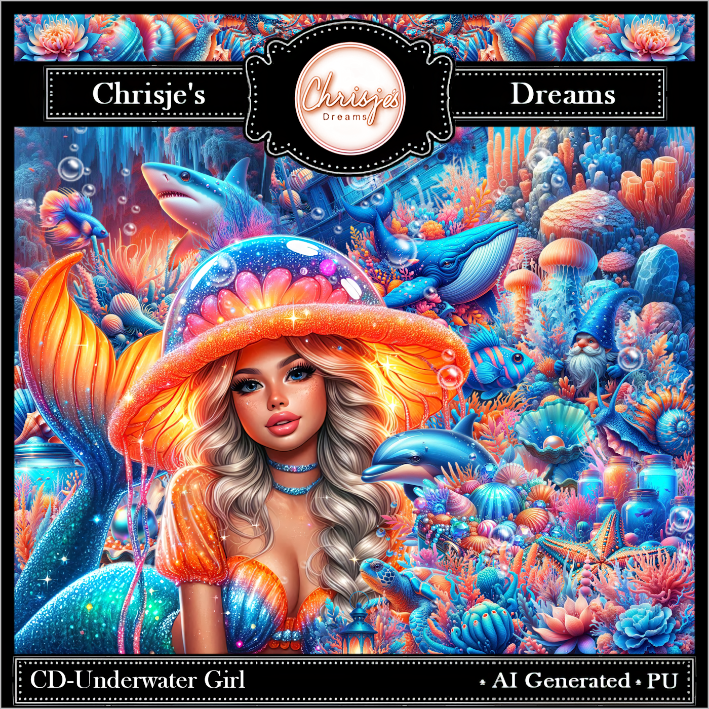 Underwater Girl is a ☀️🍹Summer☀️🍹 themed kit which contains 118 elements, 12 papers and 3 beautiful AI generated png tubes by Chrisje's Dreams.