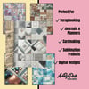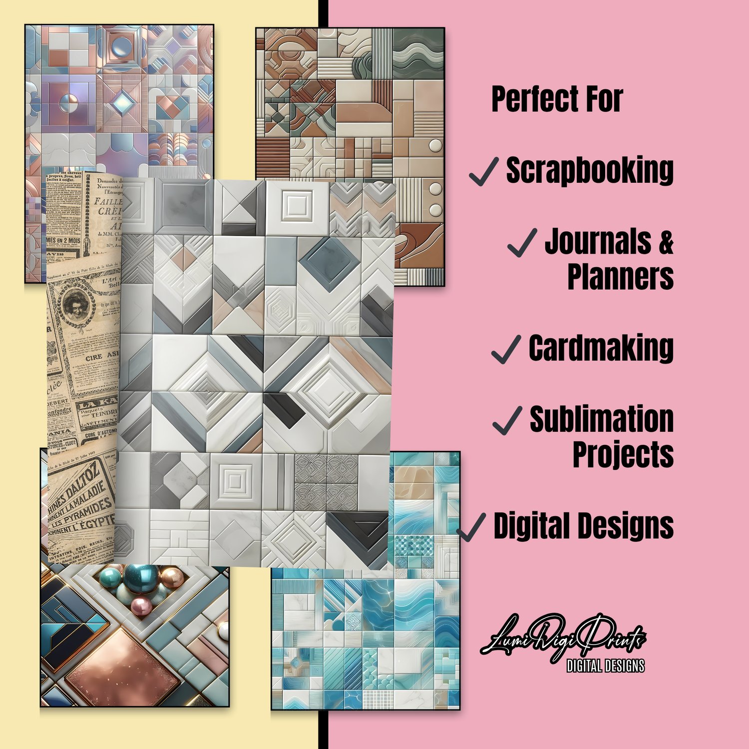 Each 12x12 inch paper (300 DPI) blends abstract shapes, metallic accents, and modern color palettes — perfect for adding depth and visual interest to your creative projects.