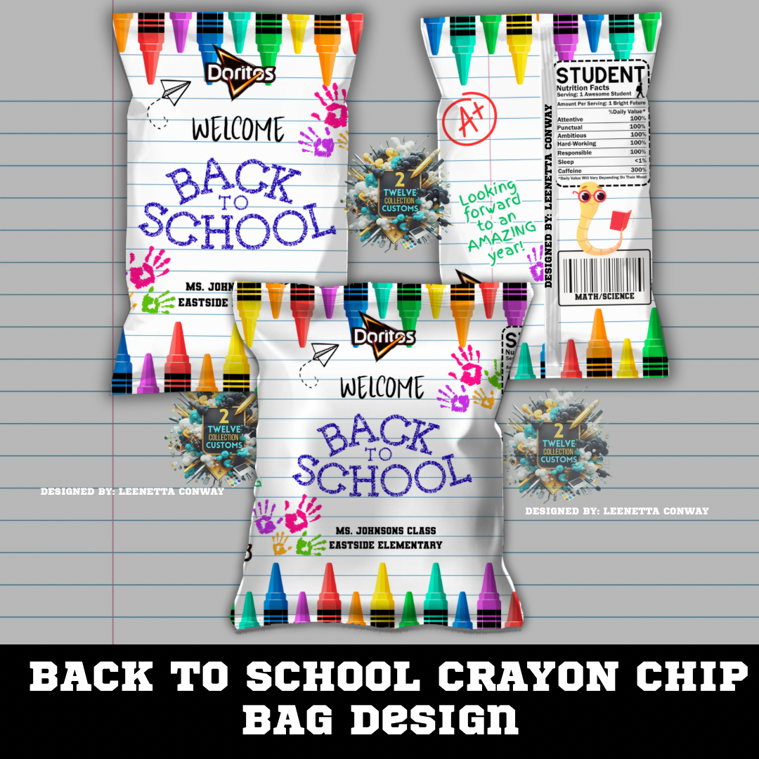 Back To School Crayon Chip Bag Canva Template | Digital Download
