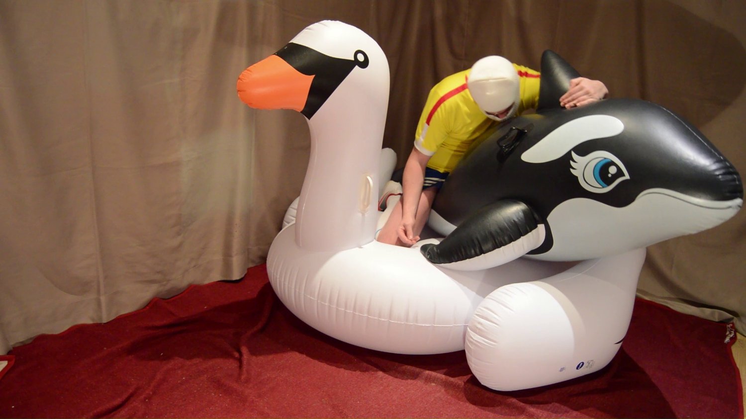INFLATABLE ORCA AND SWAN PUNCTURING