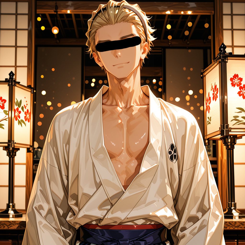 日本の正月をテーマに、着物を着用している男性を、キャラクターごとにお任せ作成しました。男らしいキャラクターの魅力を思い切って表現しました。