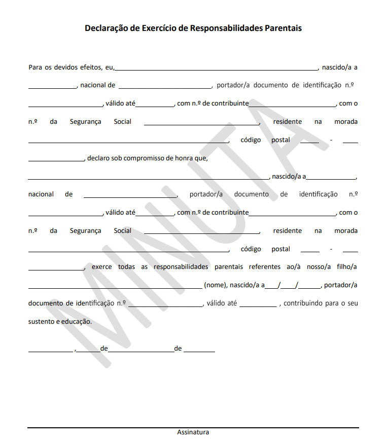 Declaração de Exercício de Responsabilidades Parentais