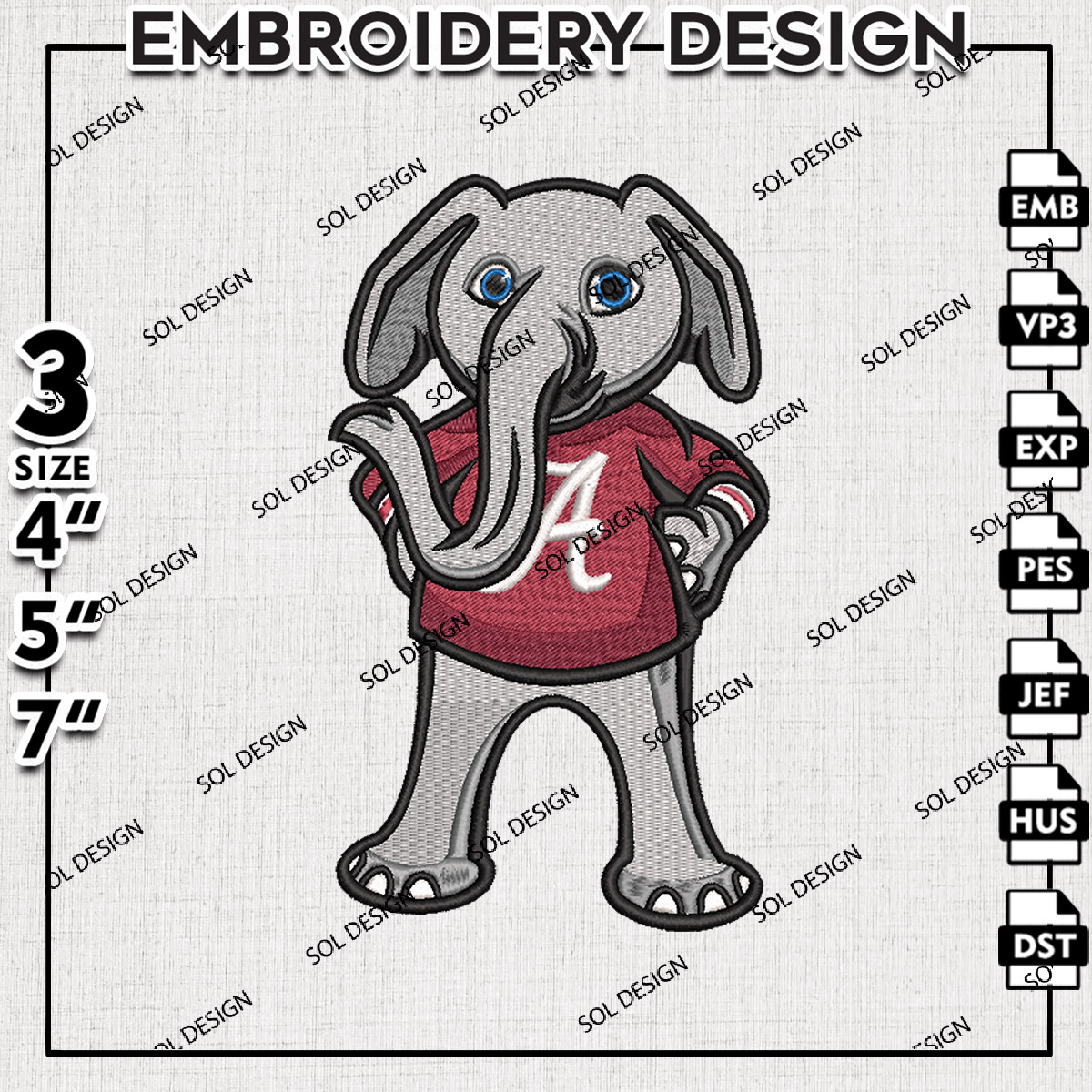 Alabama Crimson Tide Football Team Mascot Logo Embroidery Designs, NCAA Alabama Crimson Tide Machine Embroidery Files, NCAA Logo embroidery designs, NCAA Alabama Crimson Logo, Digital Download