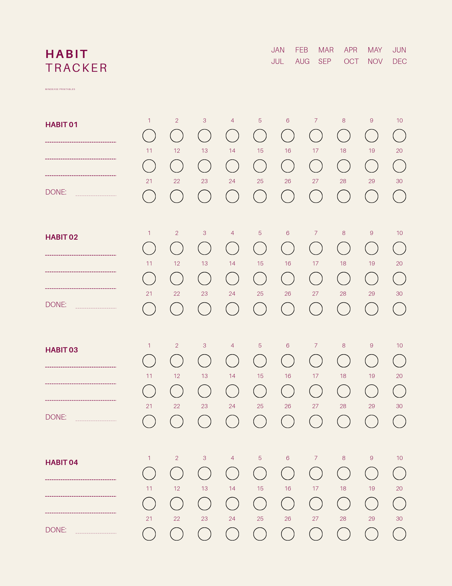 Stay consistent, motivated, and intentional with this beautifully designed Habit Tracker Printable. Perfect for anyone looking to build new habits, break old patterns, or create a daily routine that supports their goals.