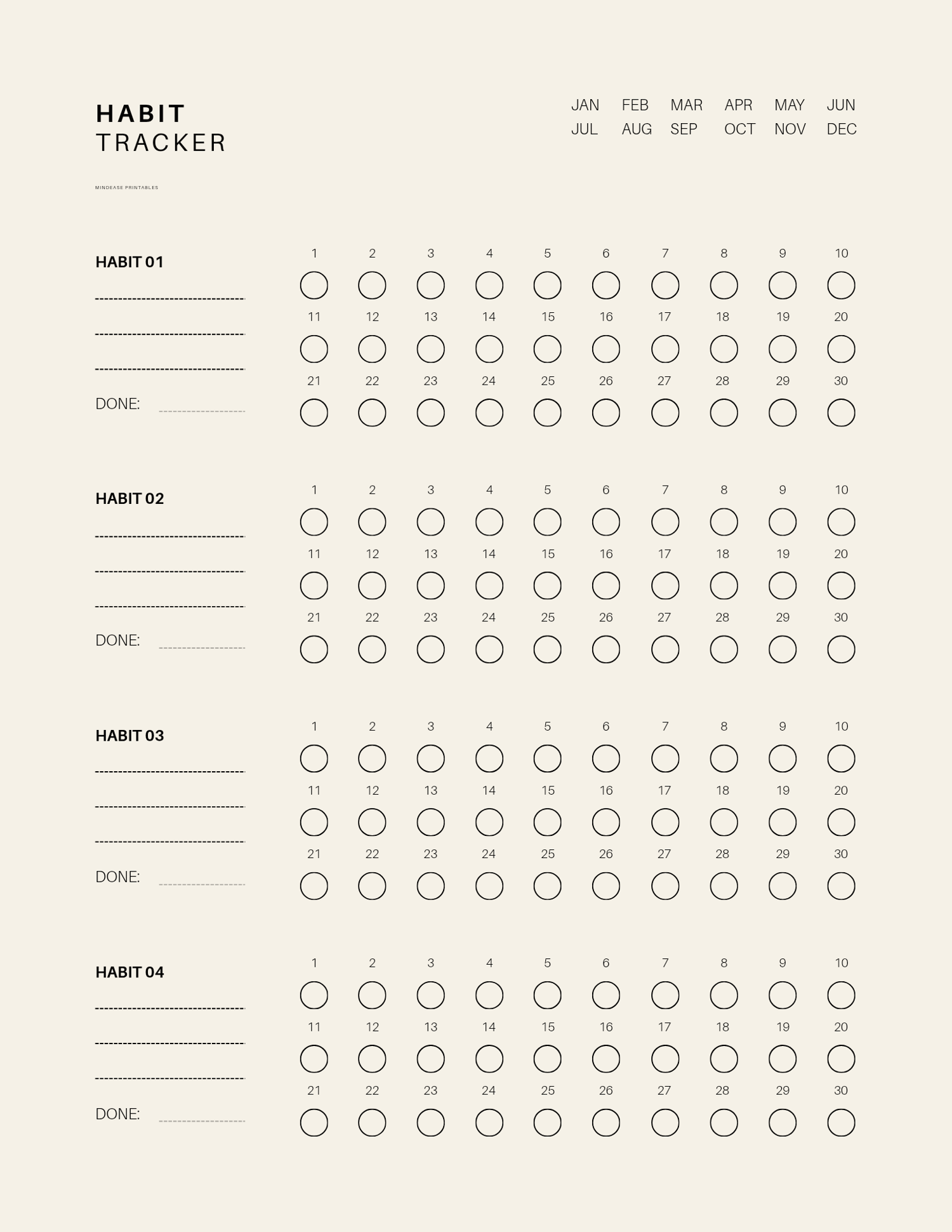 This simple, minimalist layout helps you track progress, stay accountable, and visually see your growth throughout the month — making it easier to stay committed and focused.