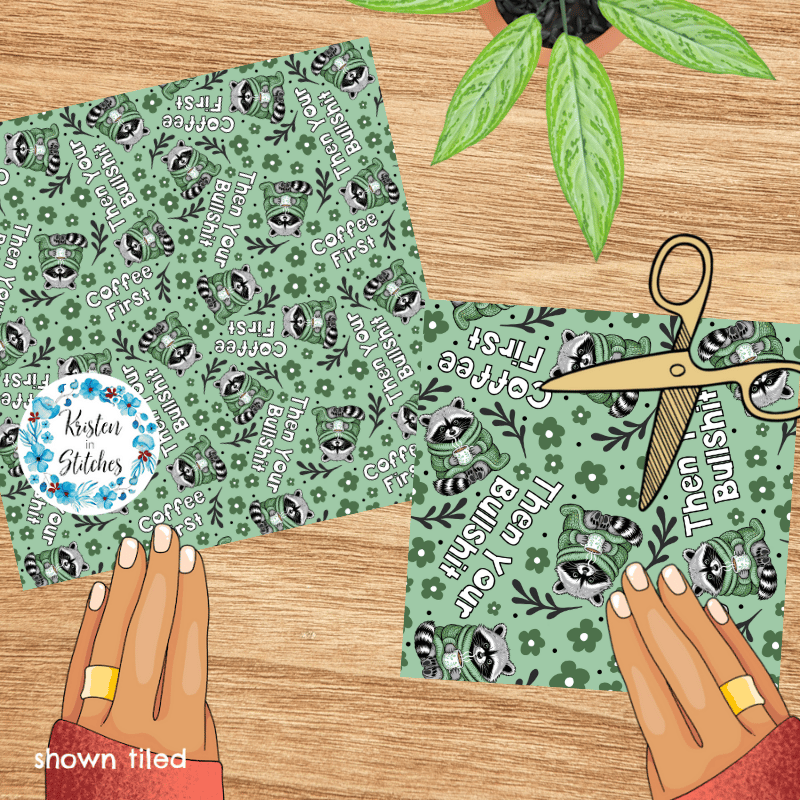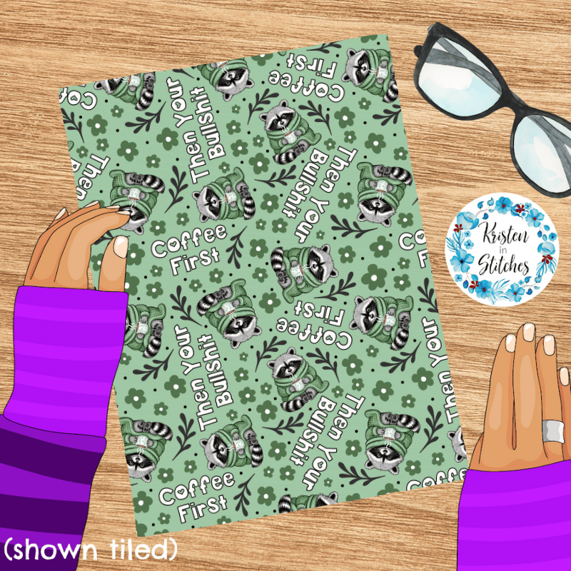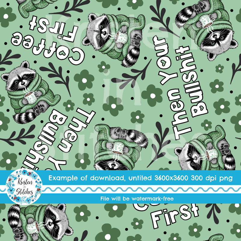 Coffee First Then Your Bullshit Sarcastic Sweary Raccoons Swear Word Seamless Pattern