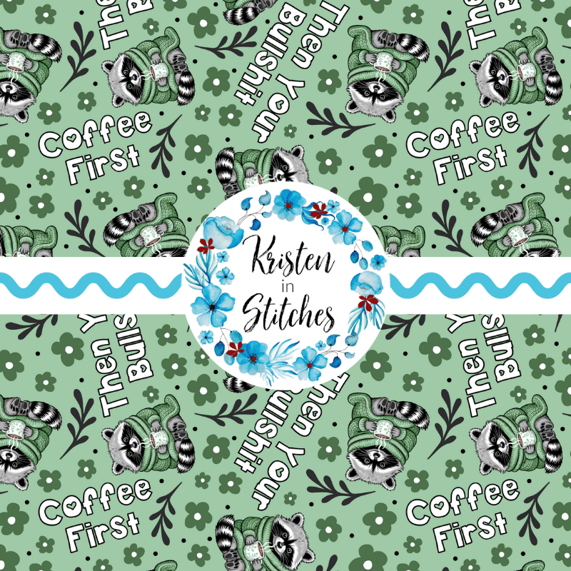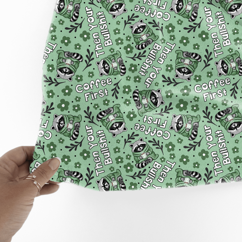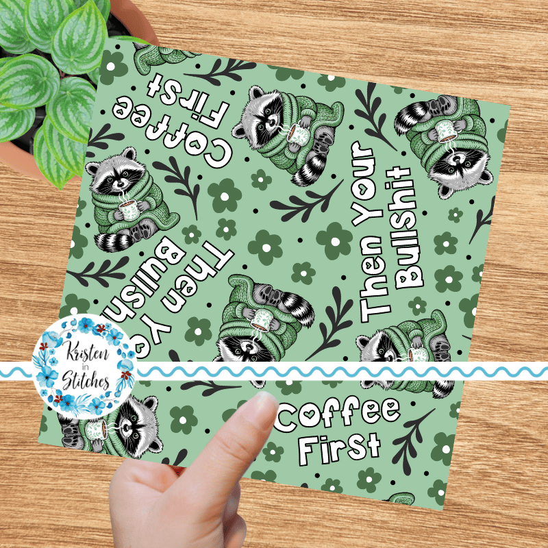 Coffee First, then your Bullshit Sweary Raccoons on Green.