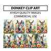 Donkey Clip Art Designs - 8 High-Quality JPGs Bundle, Watercolor Digital Prints, Wall Art, Commercial Use