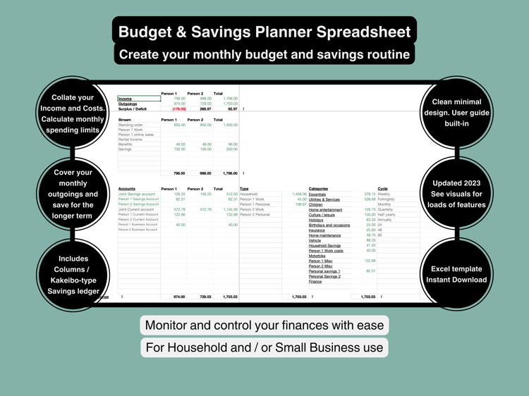 -Categories and cost items can be customised to meet your needs.