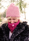 It makes a lovely slouched hat with pulled brim and moss st rise and crown.