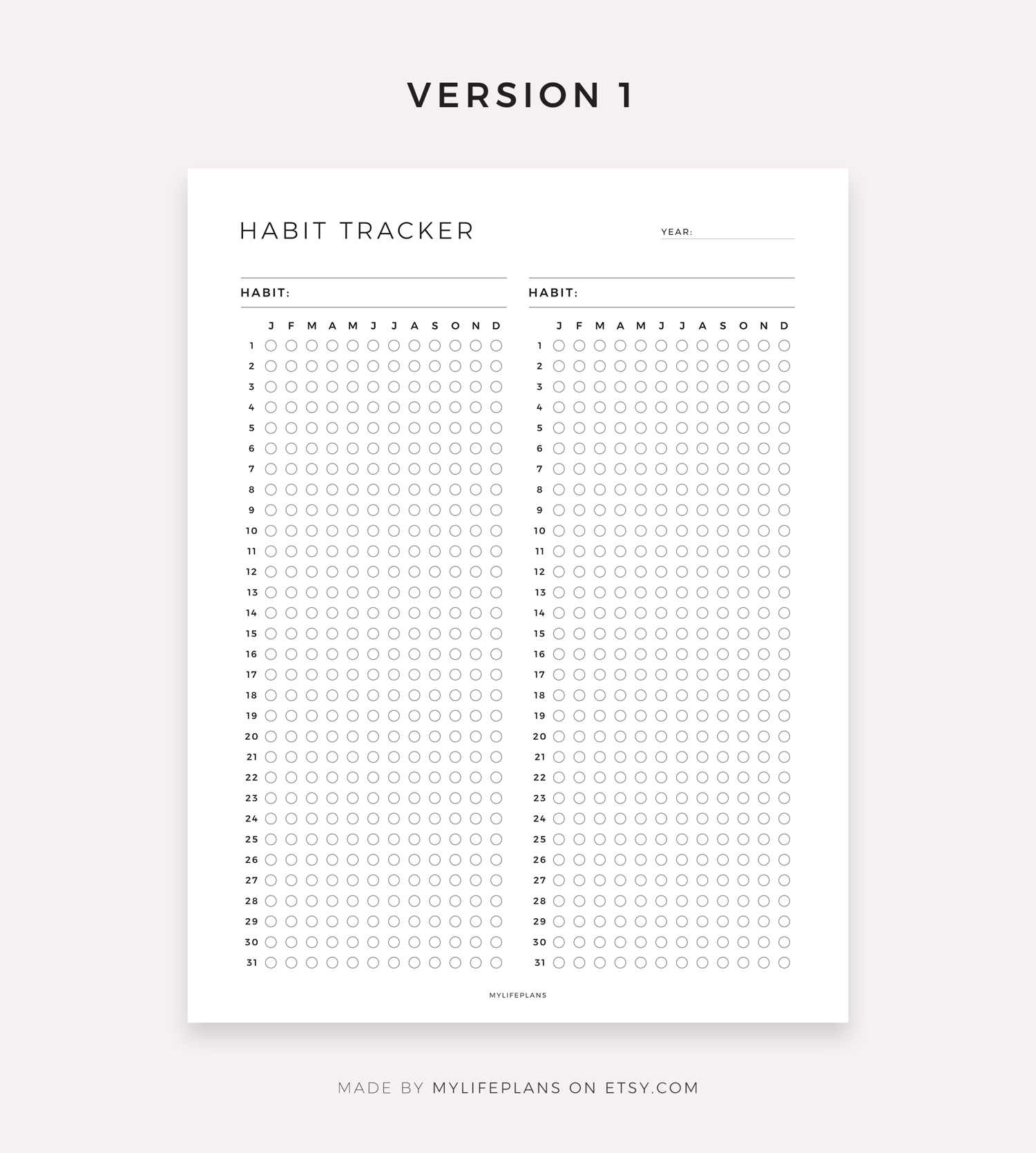 Digital Yearly Habit Tracker on One Page, Compatible with Goodnotes, Notability, Ipad