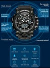 SANDA Top Luxury Brand New Arrival Men Watches 50M Waterproof Outdoor Sports Fishing Camping Wrist Watch Digital Quartz Dual Display Stop-Watch Back Light Calendar Alarm Clock Multifunctional Date Week Wristwatch Electronic For Male Birthday Christmas Fu