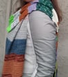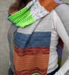Colorful and slightly oversized, this scarf is worked in fingering weight yarn and consists of 31 stripes worked in 24 different colors. Each stripe is worked in one of four stitch patterns: Garter, Stockinette, lace, and Andalusian.