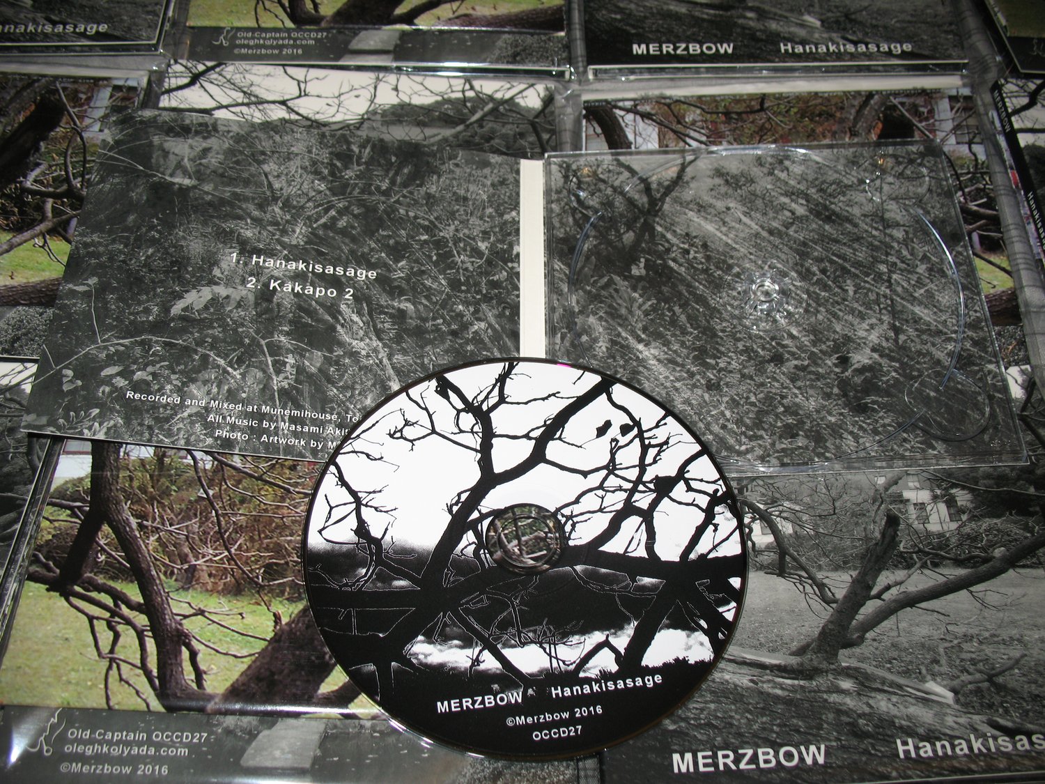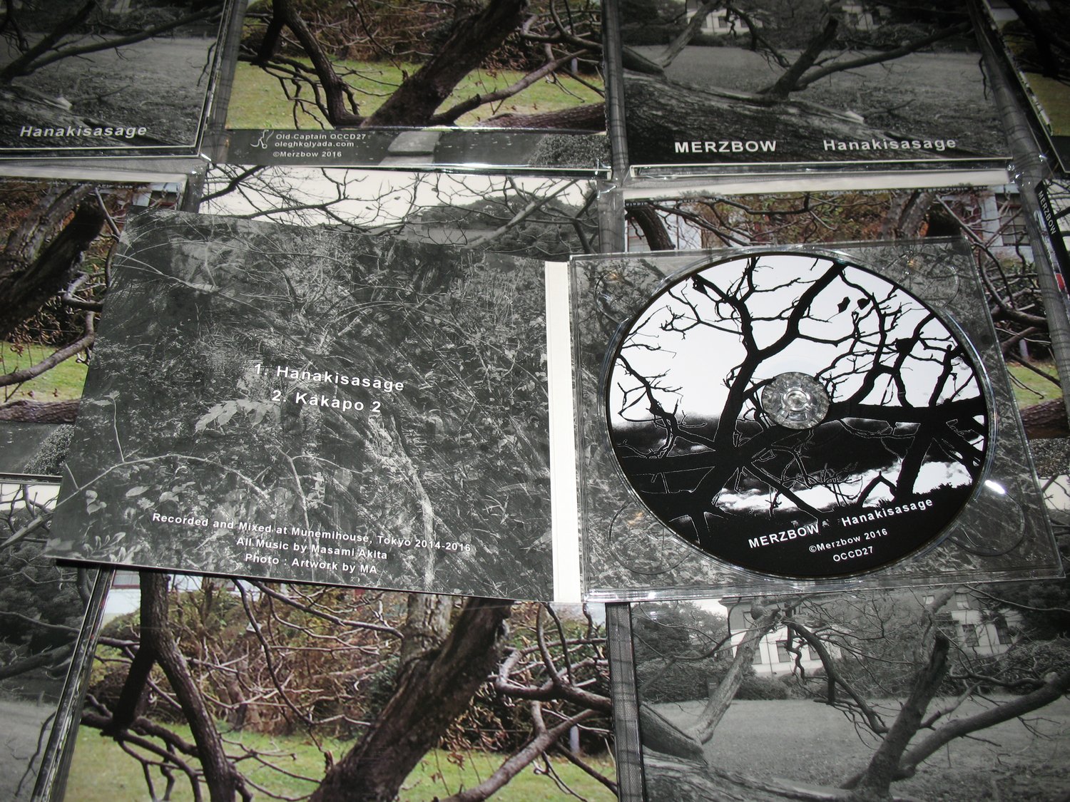 A new album by Merzbow. The name “Hanakisasage” means very rare trees which exist only few in Japan. 2 tracks of noise ambient/rhythm recorded in Tokyo during 2014-2016 and musically follow in the tendency of his recent works like ‘Kakapo’. 55 minutes of pure untamed energy and sonic insight into Masami Akita’s world. A 300-CD edition in a glossy full-colour Digipak.