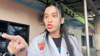 One loser is walking by, joking at her that she is showing off on social media.