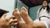 Uniform Barefoot Lots of feet super close up Polished toes