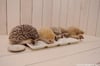 Measure between 8 and 10 inches long. Hedgehogs usually weigh between 1 and 2.5 pounds. Most of them have a rather elongated and narrow snout. They have round bodies and short legs. From the edge of their faces on, their bodies have short spines across the surface of their skin. Only their faces, legs, and underbellies lack spines. There are four fundamental colors of hedgehogs (Gray, Cinnamon, Chocolate, and Cinnicot).
