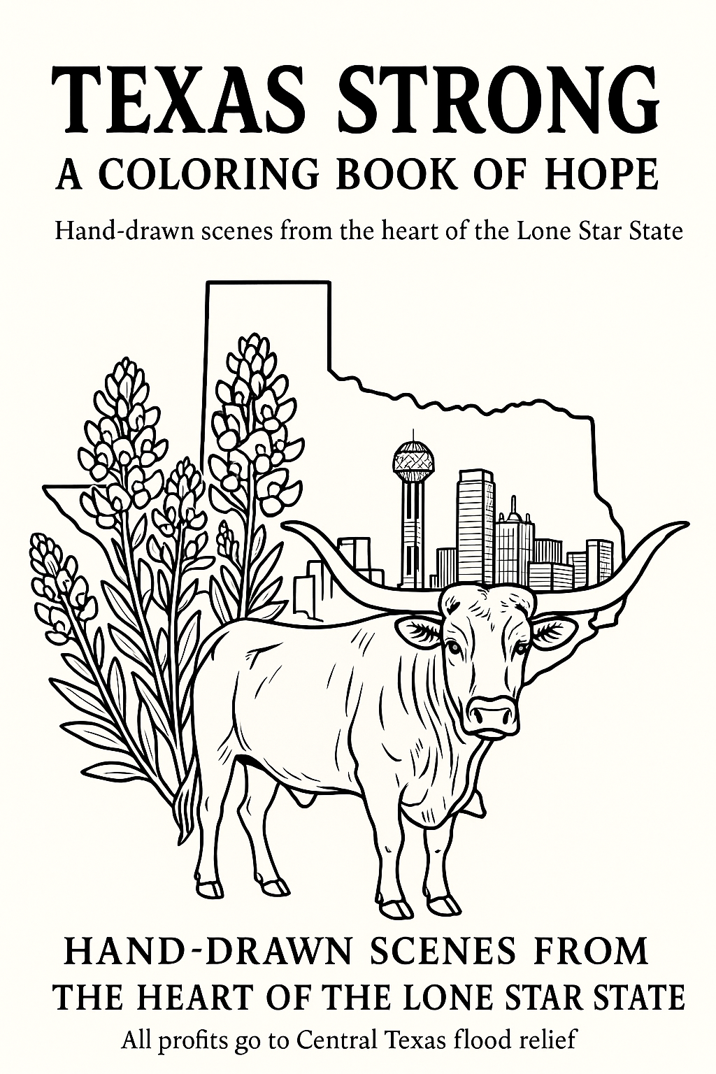 This special edition coloring book was created in the wake of the recent floods that devastated parts of Central Texas. Inside, you’ll find hand-drawn pages featuring iconic Texas imagery—from blooming bluebonnets and wide open plains, to proud longhorns and the Dallas skyline.