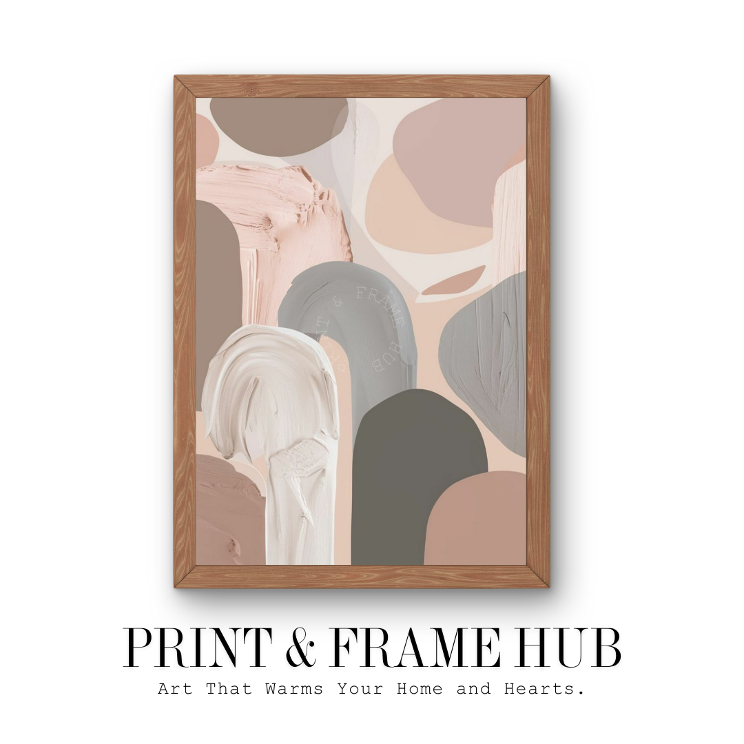 This beautiful painting features an abstract blend of soft, muted colors in gentle curves. The harmonious mix of pastel and neutral tones creates a calming, sophisticated atmosphere. A perfect addition to your walls, adding elegance and tranquility to your home.