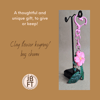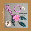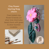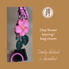 The separate pink keyring fitting can be attached to the heart clasp, the chain or the swivels, giving you more options as to how you use your Clay Flower Bag Charm.