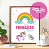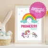 Princess room. Fantasy unicorn printable poster. Digital product.